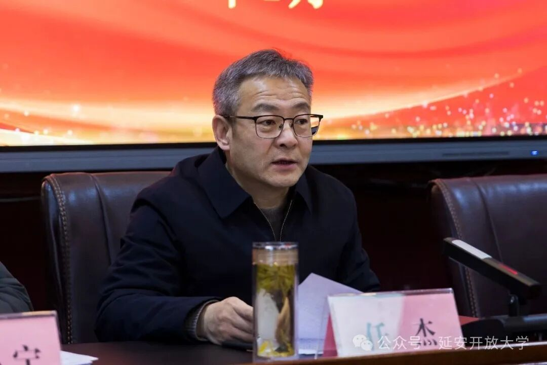 任杰在致辞中指出,2025年,学校党总支团结带领系统全体师生员工,坚持以习近平新时代中国特色社会主义思想为指导,紧紧围绕立德树人根本任务,在党建引领发展、教育教学改革、学科专业建设、师资队伍发展、社会服务拓展等方面都取得了积极的进展。特别是,我们禀赋延安资源和开放教育的独特优势,在传承红色基因、赋能地方经济社会发展方面进行了有益探索。2026年,是学校的“改革攻坚年”与“质量提升年”。系统工作的总要求是:以推动高质量发展为主题,以深化教育教学改革为动力,以服务全民终身学习和学习型社会建设为使命,奋力开创延安开放大学系统事业发展新局面。重点实施铸魂领航、体系固本、专业再造、育才提质、师资强校五项工程,奋力开创延安开放大学系统事业发展的新局面。